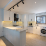 The kitchen is well-equipped with a large fridge-freezer, electric oven, microwave, dishwasher, washing machine, gas hob and extractor fan, coffee machine, sandwich toaster and kettle.