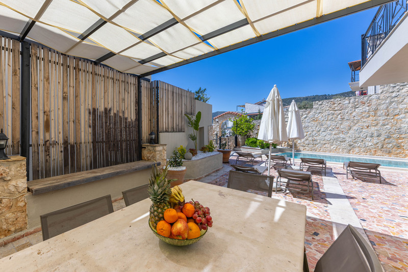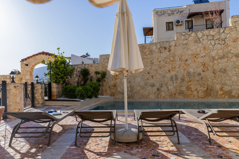 The centre of Kalkan town lies a short cab ride away or a 20-25 minute walk.