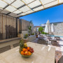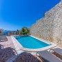The superb L-shaped pool has been finished in white mosaic and is approximately 18 metres in length. An incorporated Jacuzzi section can comfortably seat up to 10 people. Four double loungers are incorporated into the pool plus two further poolside loungers. The surrounding terrace features a large shaded entertainment / dining area to one side. A BBQ is also provided together with an out-door shower. The pool and surrounding terrace is very private and not overlooked.