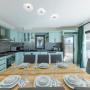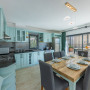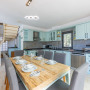 Open plan living, kitchen and dining area. The kitchen is fitted with a range of appliances including oven, hob, fridge-freezer, washing machine, dishwasher and water cooler.