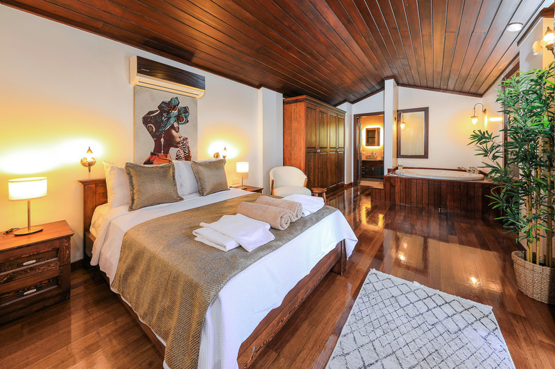 Amenities at the villa are second to none – two of the bedrooms have Jacuzzi baths, and share a private verandah / terrace.