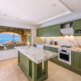 Each bedroom has a double-size bed, ample wardrobe space, vanity unit and a Jacuzzi positioned to take advantage of the sea views. Both have en-suite shower rooms with Jack & Jill basins.