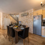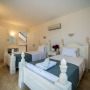 The villa is accessed down a few steps from street level and the entrance door opens into a spacious open plan living area.