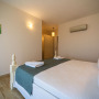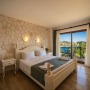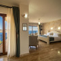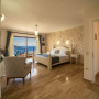 The first floor has two bedrooms; the first of which is a double with en-suite shower room. Within the room is a wardrobe and dressing table with stool. Sliding doors lead to a private balcony with a table and two chairs from which to enjoy the sea views.
