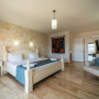 The master bedroom takes up this whole floor. There is a dressing table with stool and built-in wardrobes within the room, with a an armchair and an en-suite shower room. Sliding doors