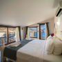 Under the high eaves is a further double bedroom with en-suite shower room. Within the room are built in wardrobes and a dressing table with stool. A glass door leads to the roof terrace with a table and four dining chairs from which to enjoy the panoramic views.