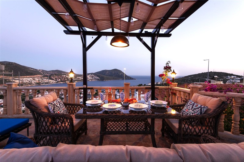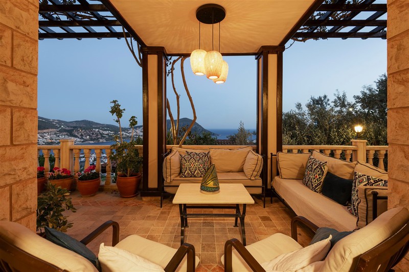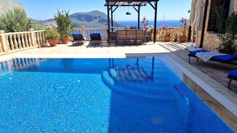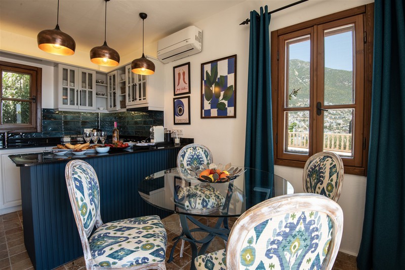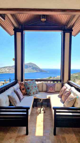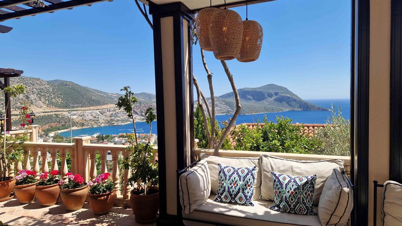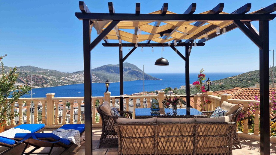 Villa Teshir is a newly refurbished stone villa with wooden shuttered windows offering 2 ensuite bedrooms in the Ortaalan area of Kalkan, just above the Kalamar Road, with fabulous sea views and only a 7-minute walk into town.