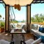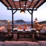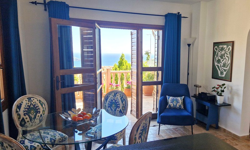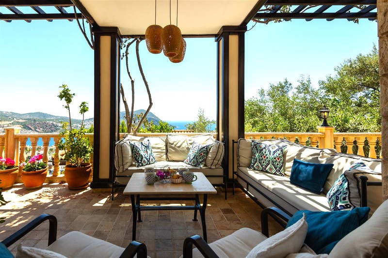 Under the covered eves is also a wrought iron sofa and two chairs with a coffee table to take in the panoramic sea views.